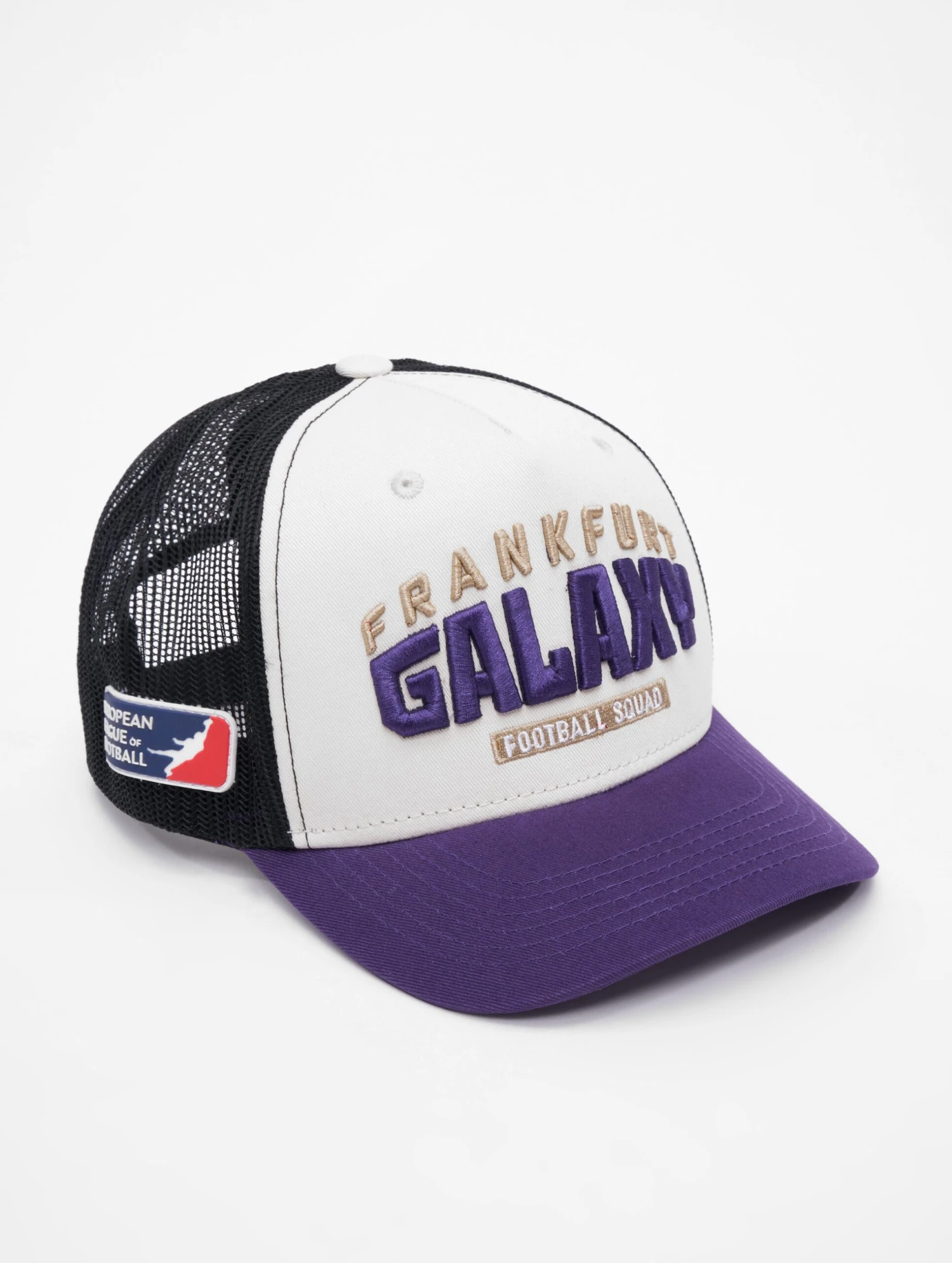 Stay stylish and comfortable with the Frankfurt Galaxy 100% Cotton Trucker Cap with the iconic Frankfurt Galaxy 3D embroidery. This unisex cap features a snapback closure for a secure and adjustable fit, making it perfect for any head size. Made from high-quality 100% cotton, this cap is breathable and comfortable, making it ideal for all-day wear. Show off your team pride with the bold Frankfurt Galaxy logo prominently displayed on the front of the cap and the European League of Football Logo on the right side. Perfect for sports games, outdoor activities or everyday wear, this cap is a must-have for any Frankfurt Galaxy fan.